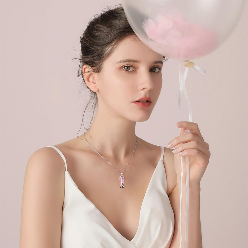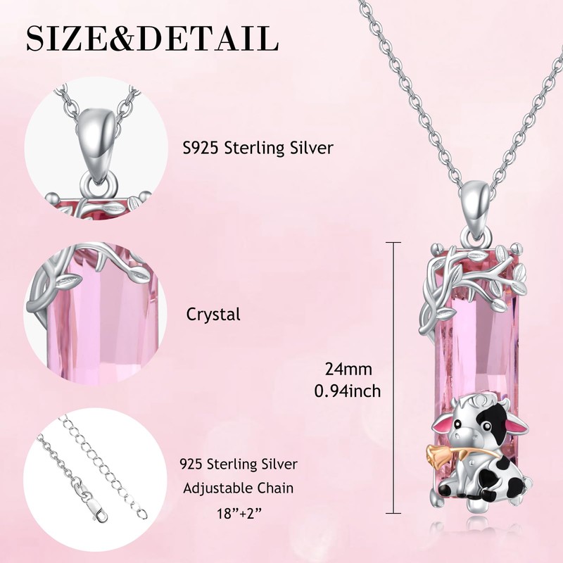 Collar de unicornio/conejo/vaca/elefante/perro/overol/gato/xolotl/perezoso para mujer de plata de ley 925 lindo collar con colgante de animal de vidrio, regalo para mujer madre esposa, Plata