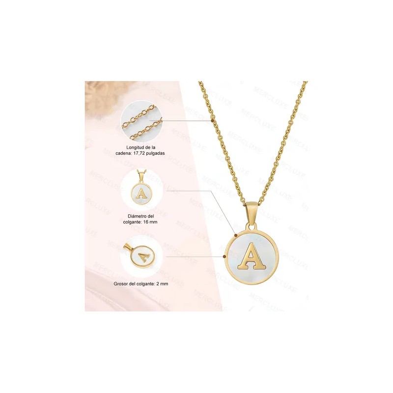 Collar Dije Letras Iniciales Acero Inoxidable Doradas Mujer