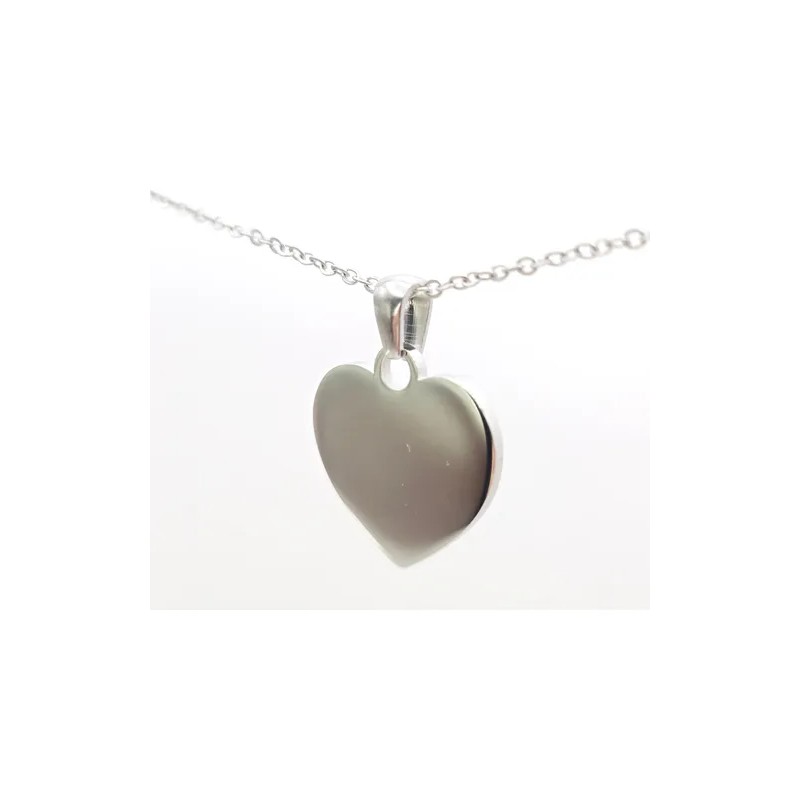 Collar Dije Plano Placa Corazón Cadena Acero Inoxidable Amor Plateado