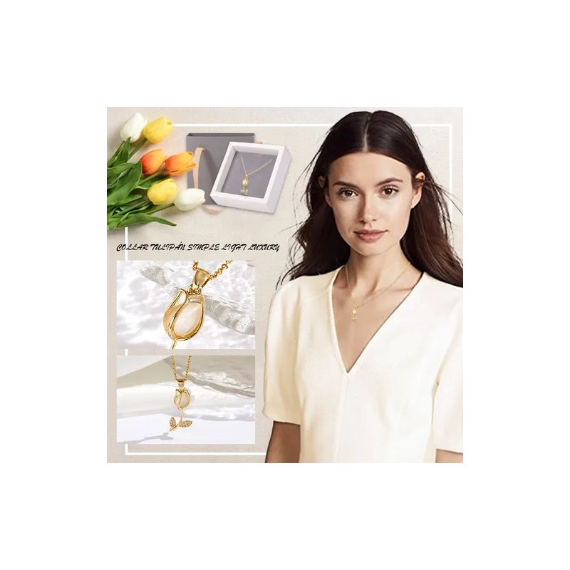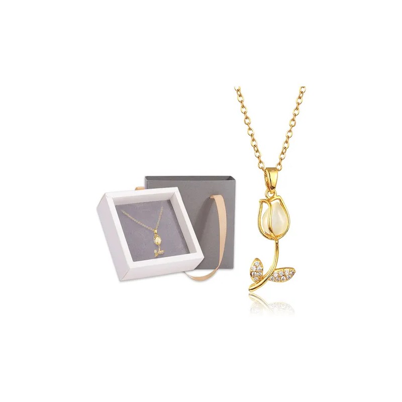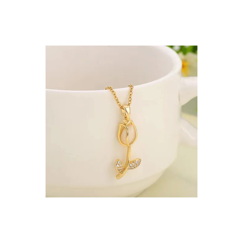 Collar Tulipán Dije Cadena Oro 18k Lujo Joyería Mujer Regalo