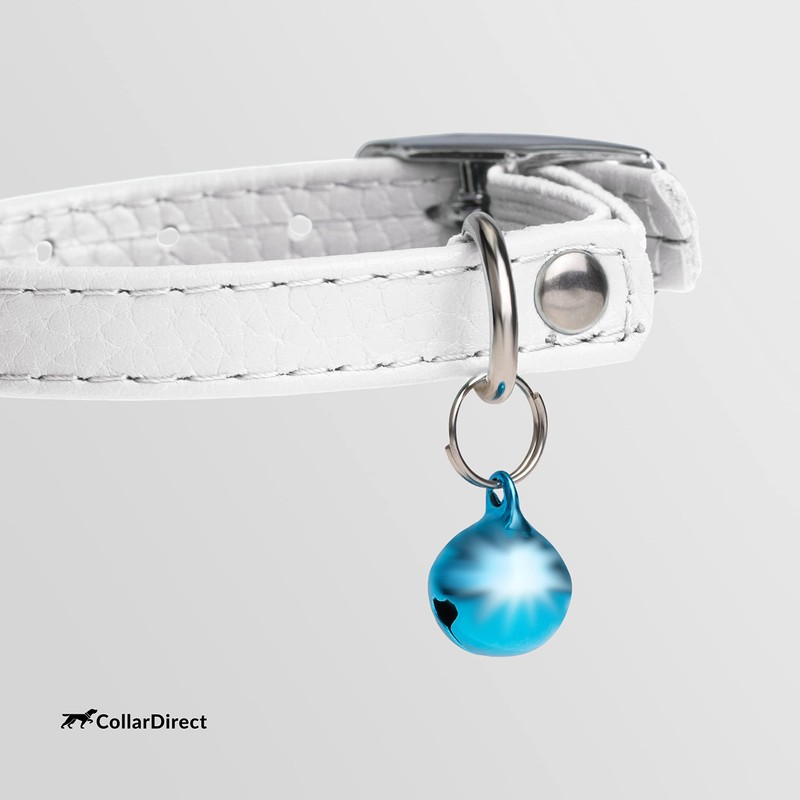 CollarDirect Leather Cat Collar with Safety Clasp and Bell 23-28 cm White