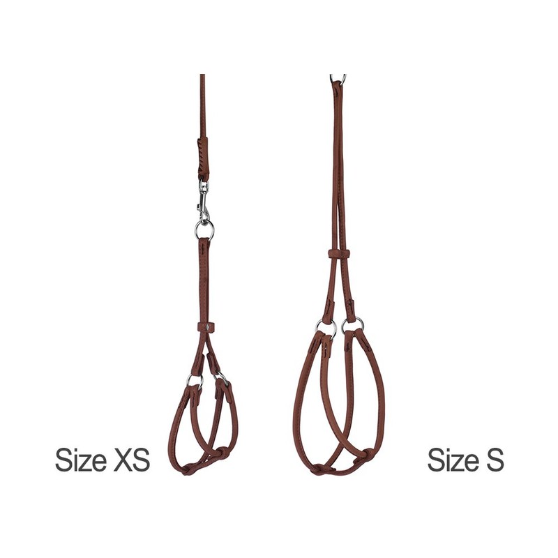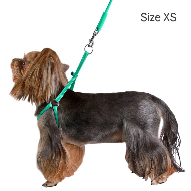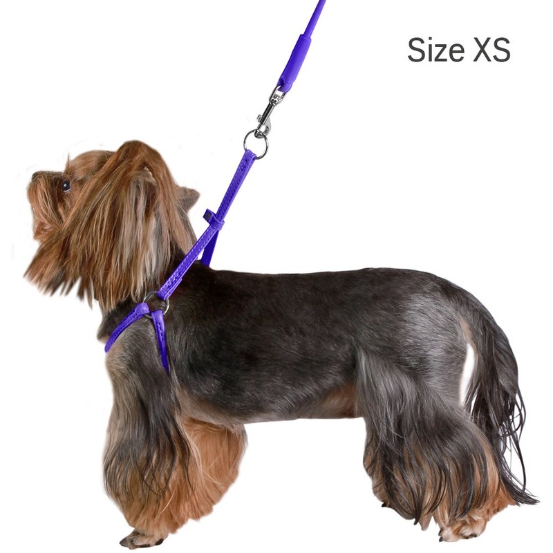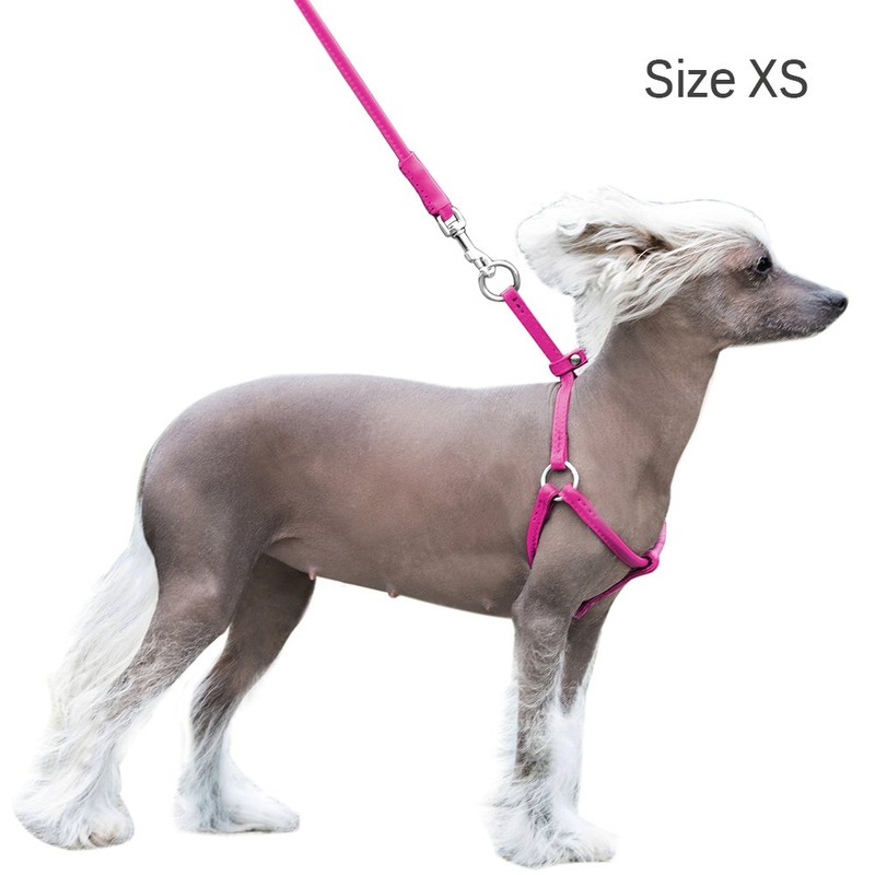 - Leather Dog Harness extra small may fit a dog with 11" - 16" chest girth. Please measure your dog's chest girth behind the front legs to choose correct size.