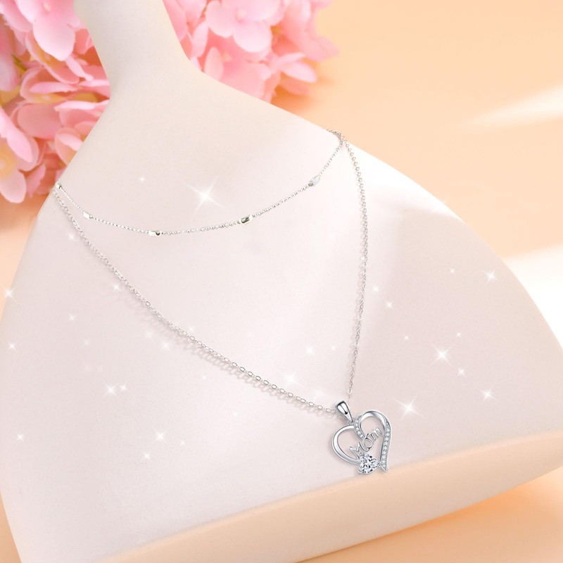 - 💗【Collar de plata de alta calidad】Hecho de latón chapado en plata 925 de alta calidad y circonita cúbica brillante, sin níquel ni plomo, hipoalergénico, perfecto para el uso diario, cómodo y seguro para pieles sensibles, lo que lo convierte en un gran regalo para mostrarle su amor a su mamá o futura mamá.