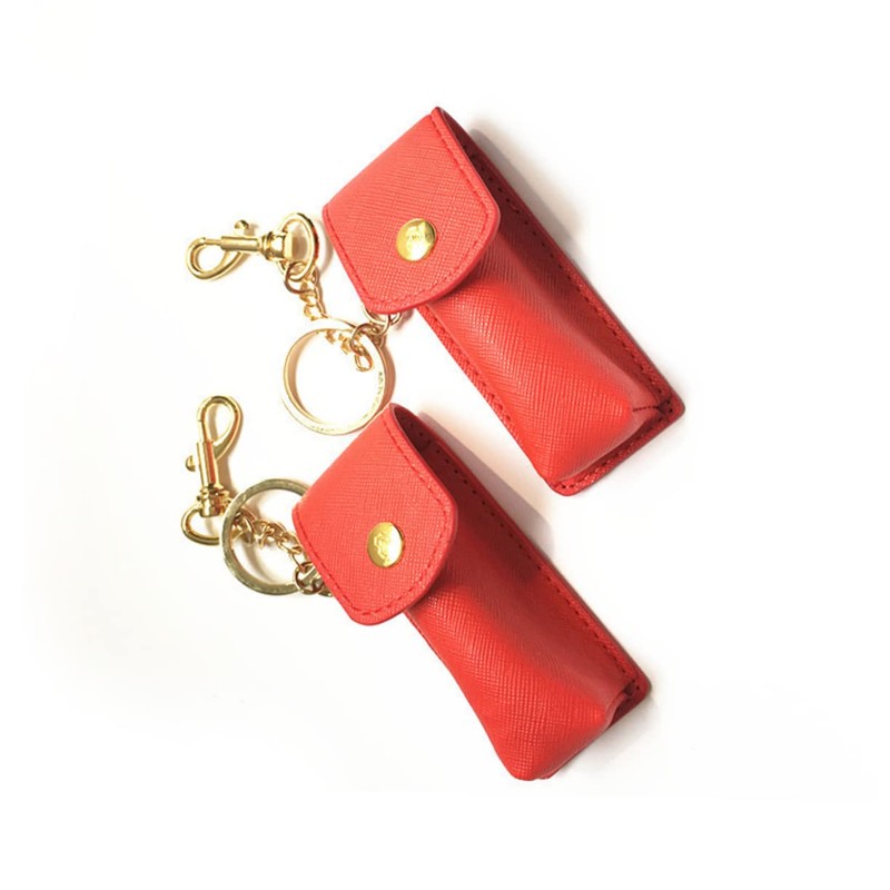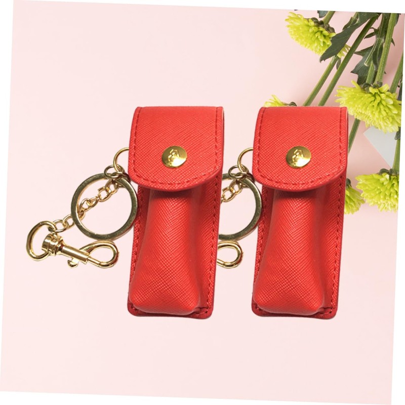 COLLBATH 2pcs Leather Case for Lipstick Lip Balm Holder Pouch Keychain Bag Portable Travel Cosmetic for Women