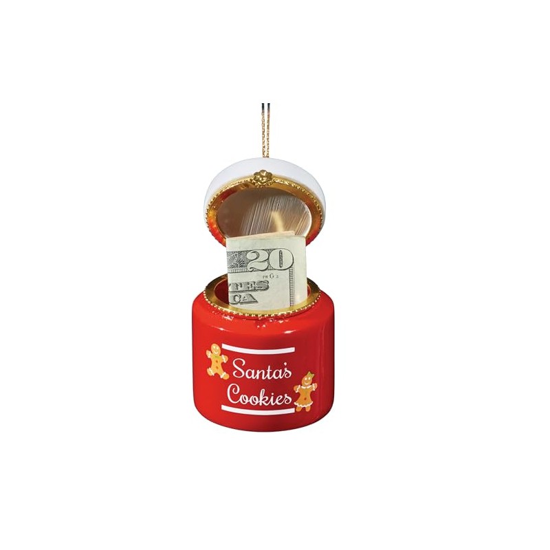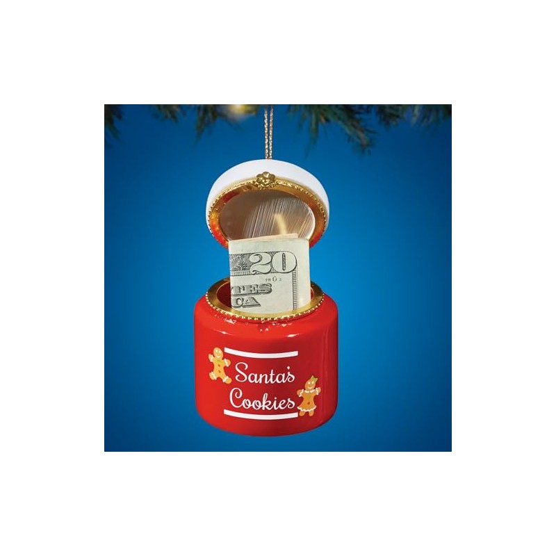 - These charming ornaments decorate your tree and open up so you can put a special gift inside. Choose the hot chocolate mug, cookie jar, polar bear or train each features bright colors and intricately hand-painted details