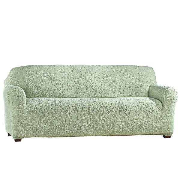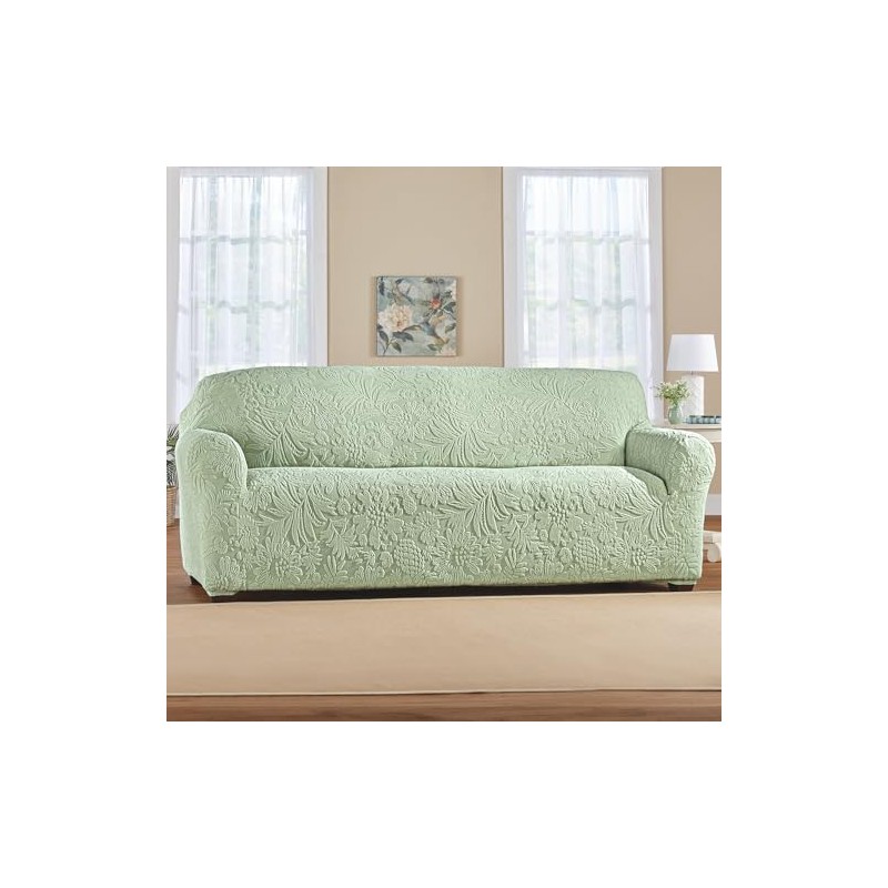 Collections Etc Embossed Tropical Design Stretch Furniture Cover Sage Sofa