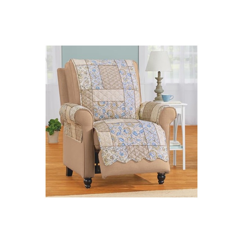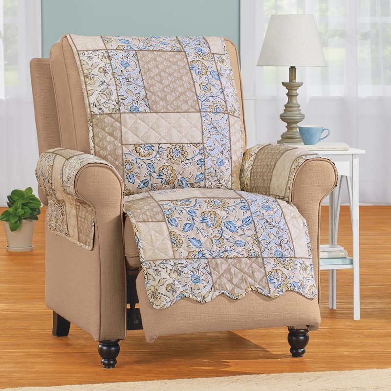 Protect your furniture from wear and tear, pet hair, spills and stains with these stylish quilted furniture covers. The quilted cover has a charming floral patchwork pattern in neutral tones to coordinate with any home décor. A scalloped edge is the perfect finishing touch. Machine wash. Polyester; imported. Choose: Chair, Recliner, Loveseat or Sofa.