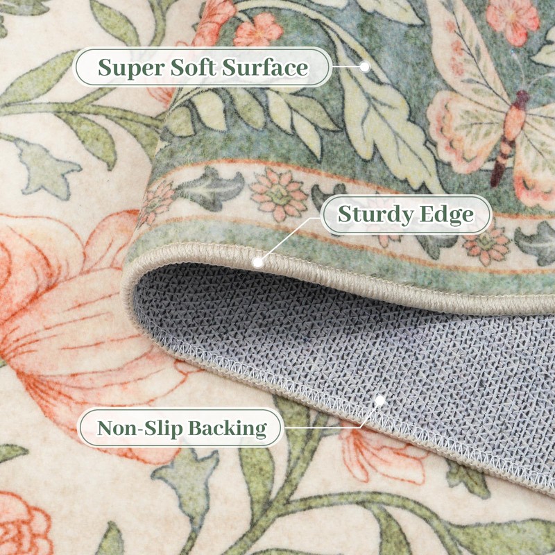 Collive Floral Butterfly Area Rug – Washable, Soft, and Timelessly Elegant