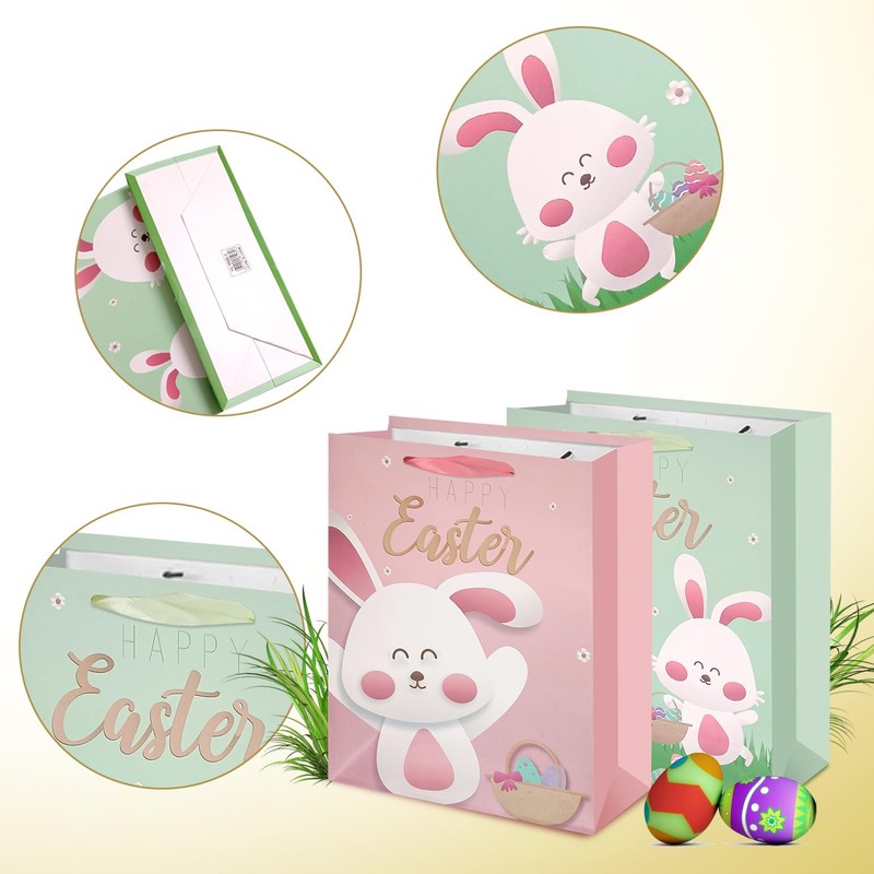 - - Each bag measures 9.2" x 7.2" x 4", featuring unique Easter-themed designs