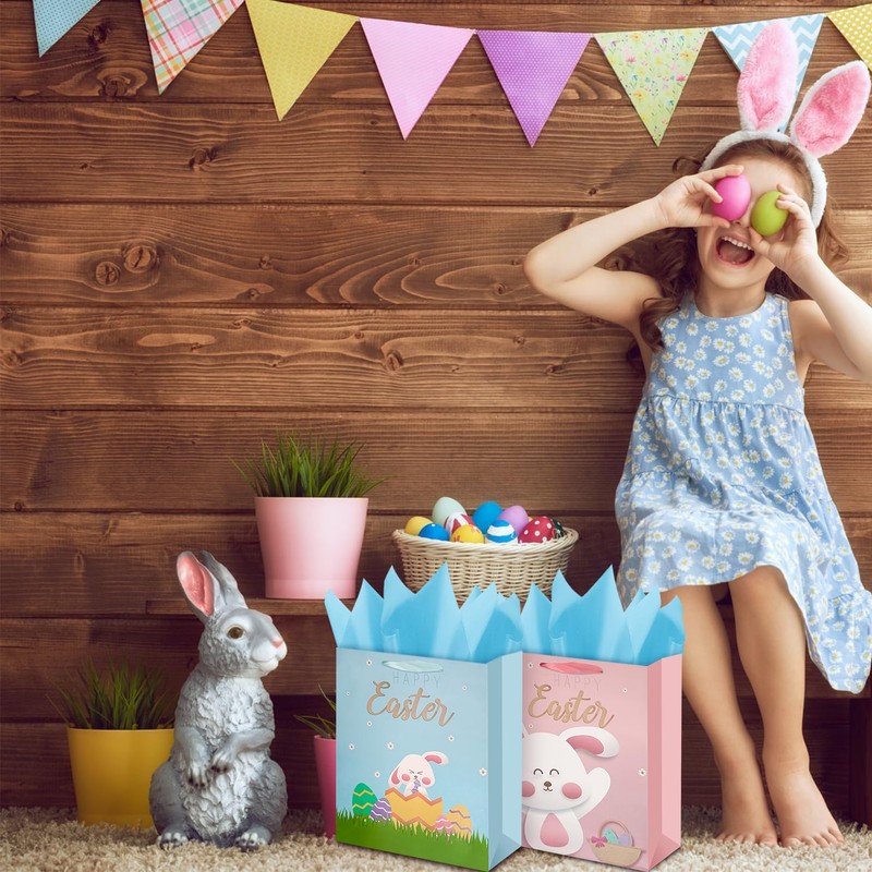 - - Set of 4 Easter gift bags with 4 sheets of colorful tissue paper