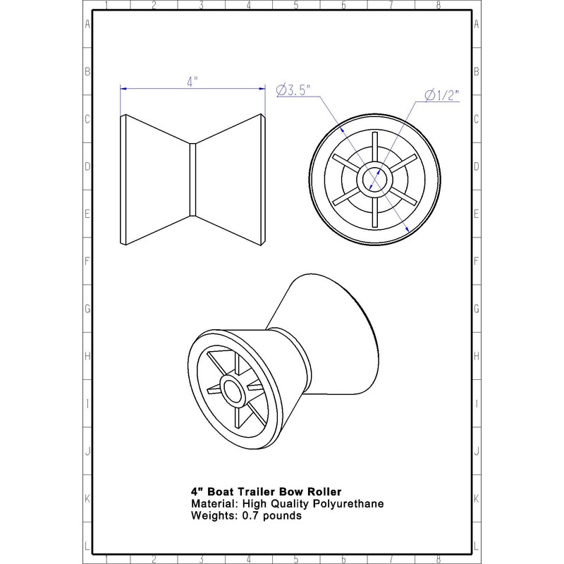 - 1 pcs 4" polyurethane red boat trailer bow roller with spokes
