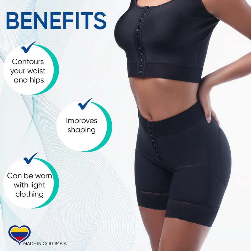 Colombian Tummy Control and Butt Lifting Panties- High Compression Shaping Shorts for Daily Use or Post Surgery BBL Recovery (US, Alpha, Large, Regular, Regular, Black)