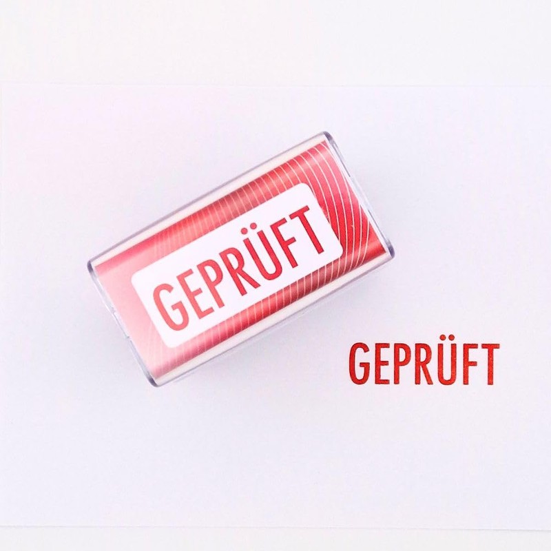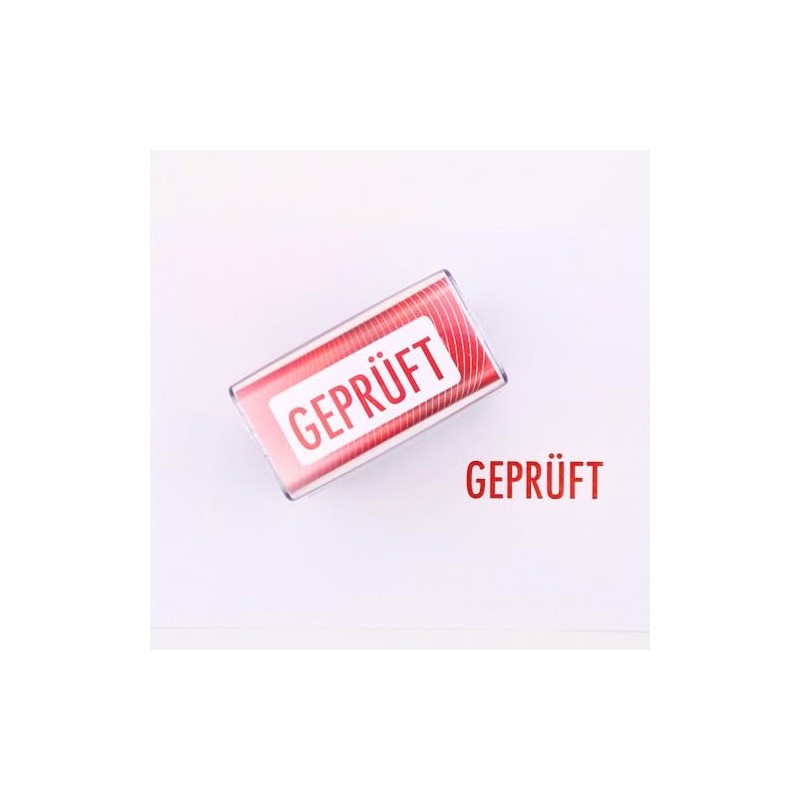 - In addition to the text GEPRÜFT, you can also buy this product with other common office texts: PAYD, BOOKED, FAXT, RUSH VERY, DONED, COPY, URGENT, CONFIDENTIAL, SCANNT, ORIGINAL