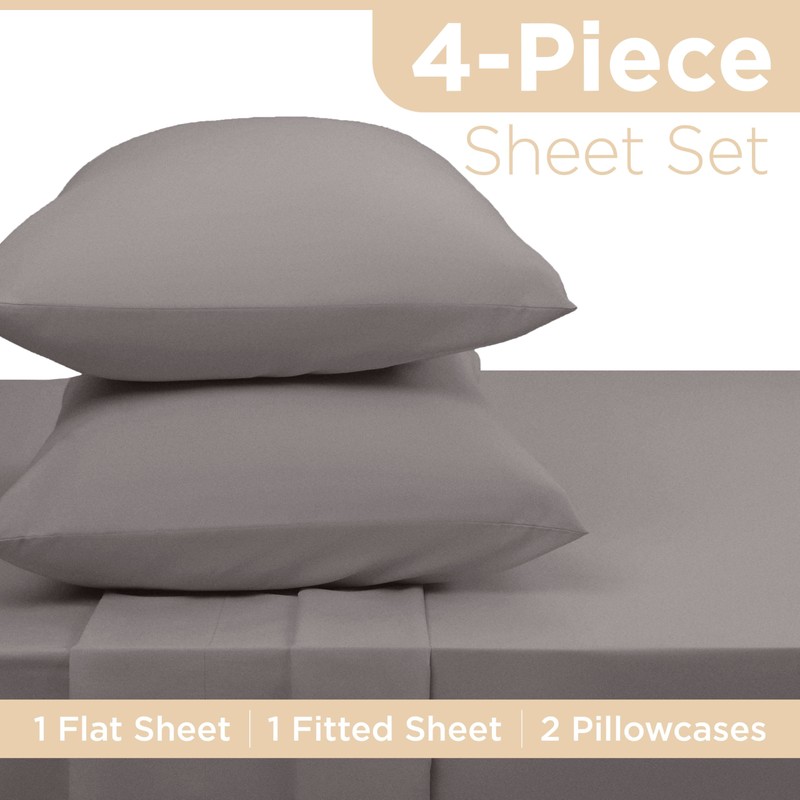 - 4-Piece Deep Pocket Sheet Set - This king size bedding set includes 1 flat sheet (108" x 102"), 1 fitted sheet (70" x 80") with deep 16" pockets and all-around elastic for a snug, stay-in-place fit, plus 2 pillowcases (20" x 40").
