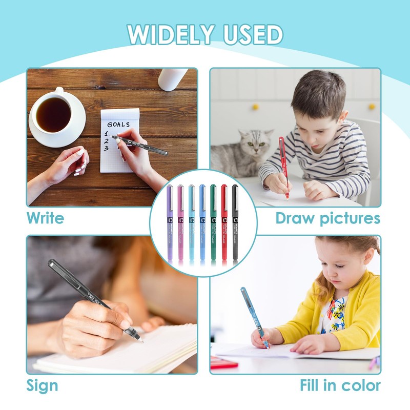 Colored Gel Rollerball Pens, 7Pcs 7 Colours 0.5 mm Nib Liquid Ink Pens Fade-Resistant Quick Drying Non-Smudging Smooth Precise Fine Point Multipack Paint Writing Pens for School Office Art Drawing