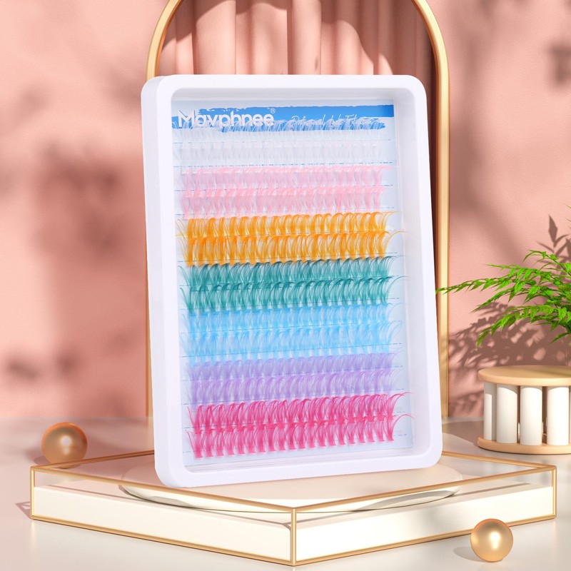 Colored Lash Extension Individuals 280 Pcs Colored Eyelashes Clusters 7 Colors Fluffy Wispy 16MM 18MM Colorful Eyelash Extensions DIY at Home by Mavphnee