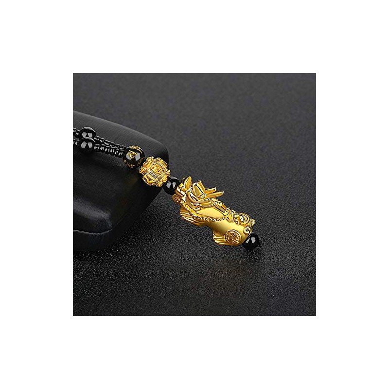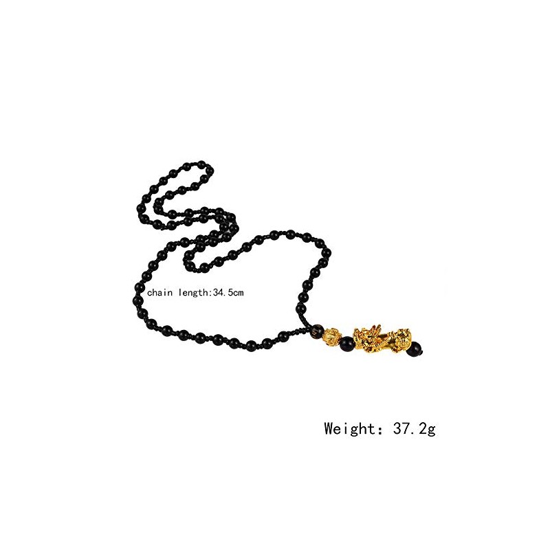 The necklace are strung by a gold plated Pi Xiu, obsidian, means it can collect strong power, the colors and styles are elegant and beautiful, can wear for your daily life.