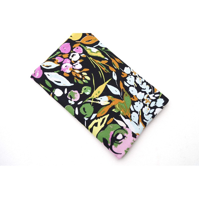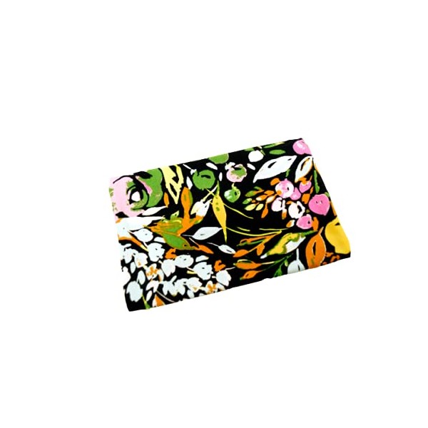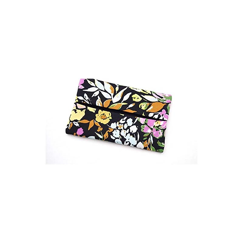 This is lovely pocket travel tissue holder was made with black fabric covered with colorful flowers. It will hold your tissues in your purse, car, anywhere. Measures 3.5 X 5 inches. A unique gift idea, wedding favor or accessory to put in your purse or car. Holds a travel tissue pack best if you remove the packaging. Machine washable. May use a hot iron.