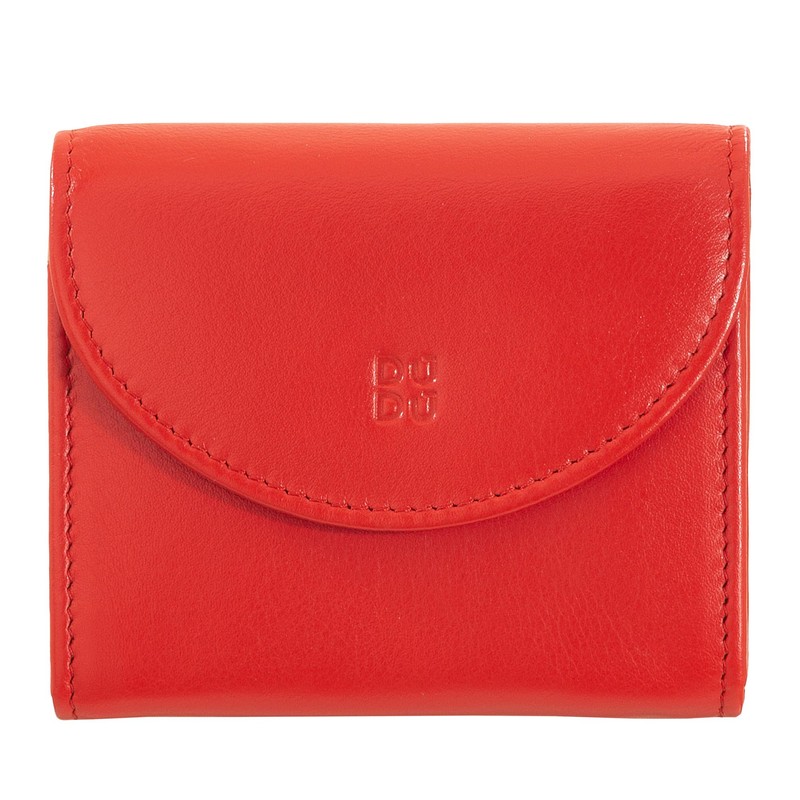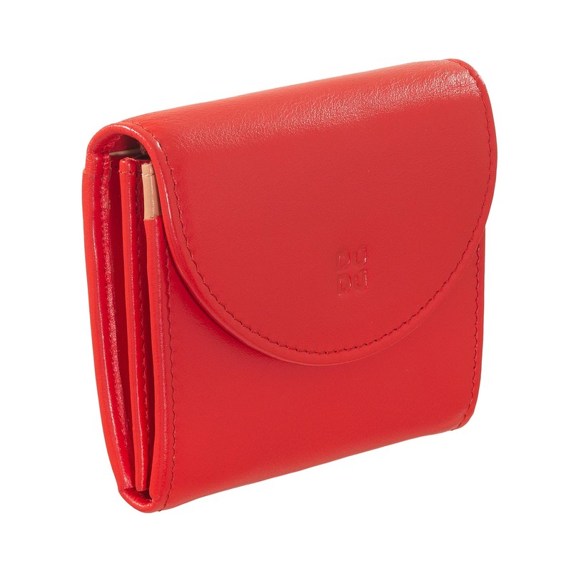 • Brand: DuDu Material: Full grain calf leather Dimensions (closed): 8.3 x 10 x 1.5 cm Weight: 120 g Packaging: Yes Gender: Women Features: 1 outer pocket, 4 credit card slots, 1 coin pocket with zip and 2 extra compartments Available colours: Black, Pastel Blue, Pumpkin Orange, Lime, Raspberry Multicolour