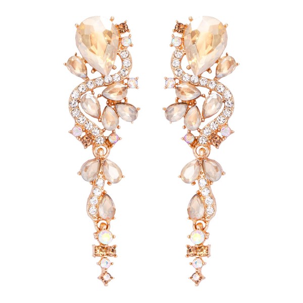 Colorful Rhinestone Statement Dangle Drop Earrings for Women Fashion Long Zircon Geometric Dangling Earrings Wedding Chandelier Earrings Jewelry Gifts (Champagne)