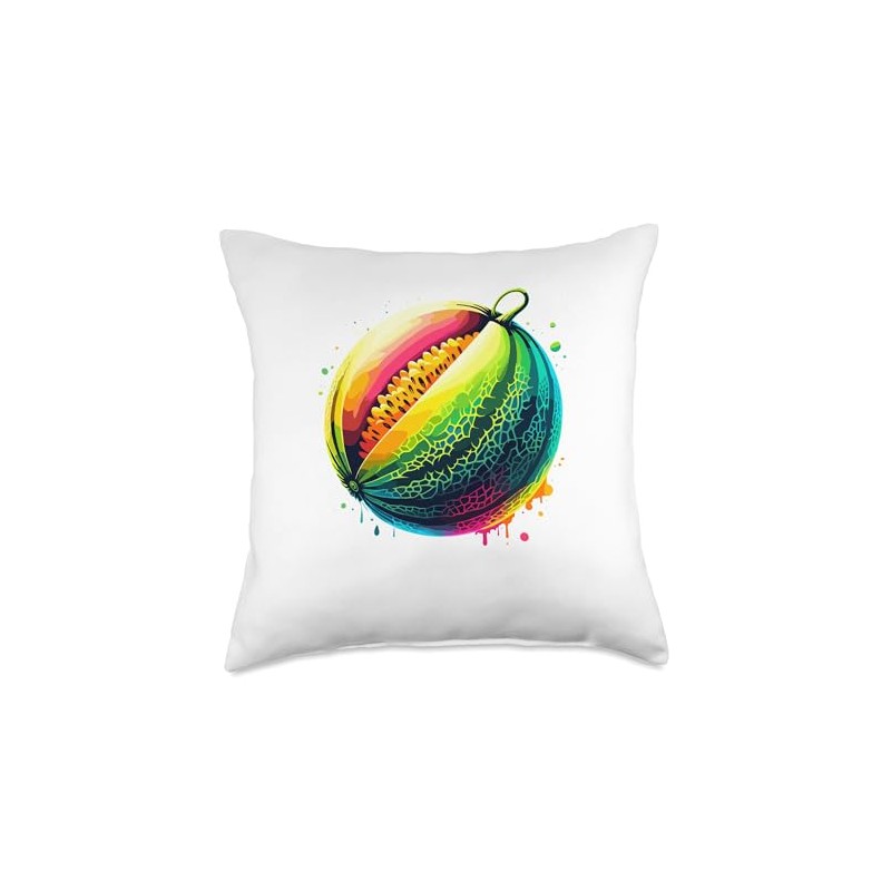 Colorful Splash Art Honeydew Melon Throw Pillow