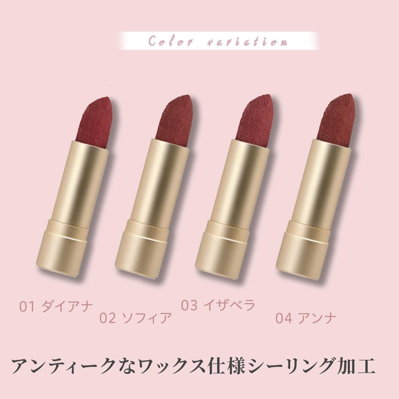 - [Features] The antique cameo is added to the package and lid, so you can feel better by holding the lipstick. Even when the lid is open, the lipstick has a detailed pattern