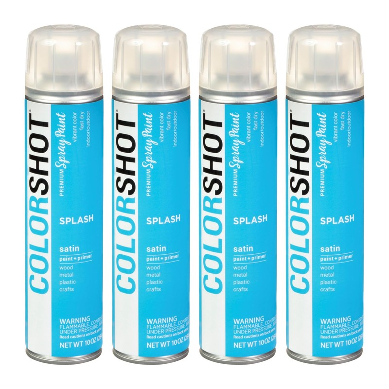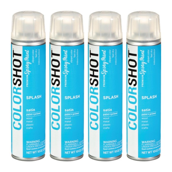 - Includes 4 cans COLORSHOT Satin Spray Paint Splash (Medium Blue) 10 oz.