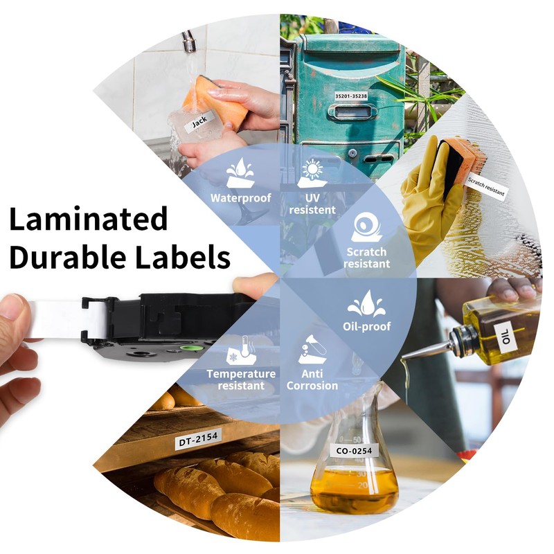 - Indoor / outdoor use: Tze 18 mm tape standard laminated, smudge, weather and scratch resistant, temperature, chemical, UV resistant and durable.