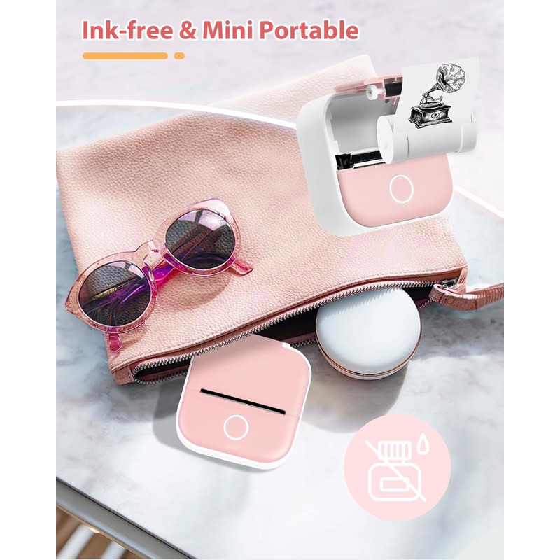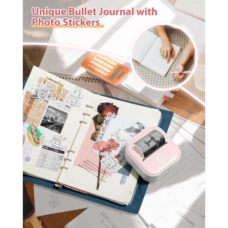 • Sleek and Portable Pocket Printer: With its mini and lightweight body, the small printer is palm-sized, allowing for printing anytime, anywhere, catering to your creative needs such as stickers, scrapbook, journal, photos, pictures, memo, shopping lists, study plans and meeting notes.