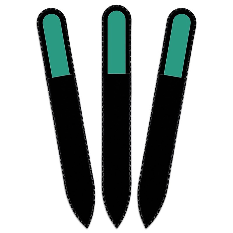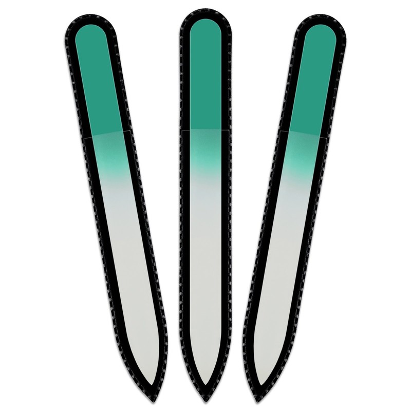 Coloured Glass Nail File with Velvet Bag, Real Toughened Glass from the Czech Republic – Lifetime Guarantee | Hand Made in the czech republic Green