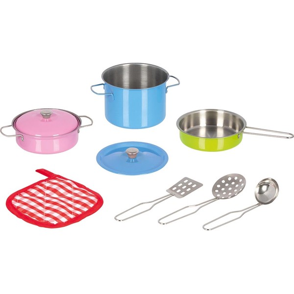 • COMPLETE SET Includes pots, lids, pot holders and assorted kitchen utensils - everything little chefs need