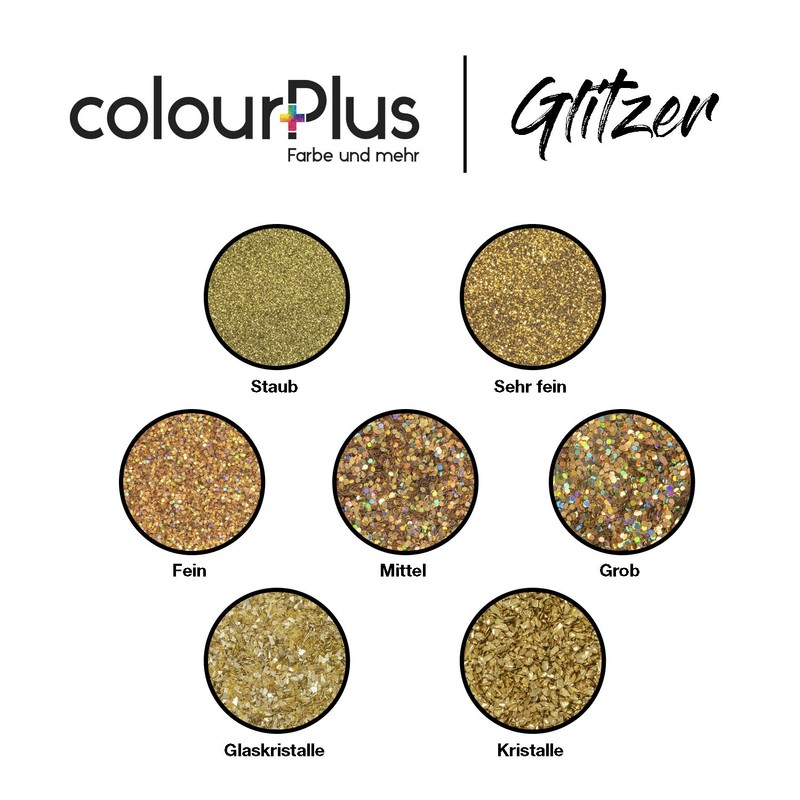 - Do you want a change in your home and like glitter? Then we have the optimal solution for you with our glitter. The glitter particles are versatile. They can be used in emulsion paints or clear varnish, for wall design, stirred or used for crafts. Note that heavy glitter varieties such as "crystals" should be processed in emulsion paints with a high binder content or in our glitter emulsion.