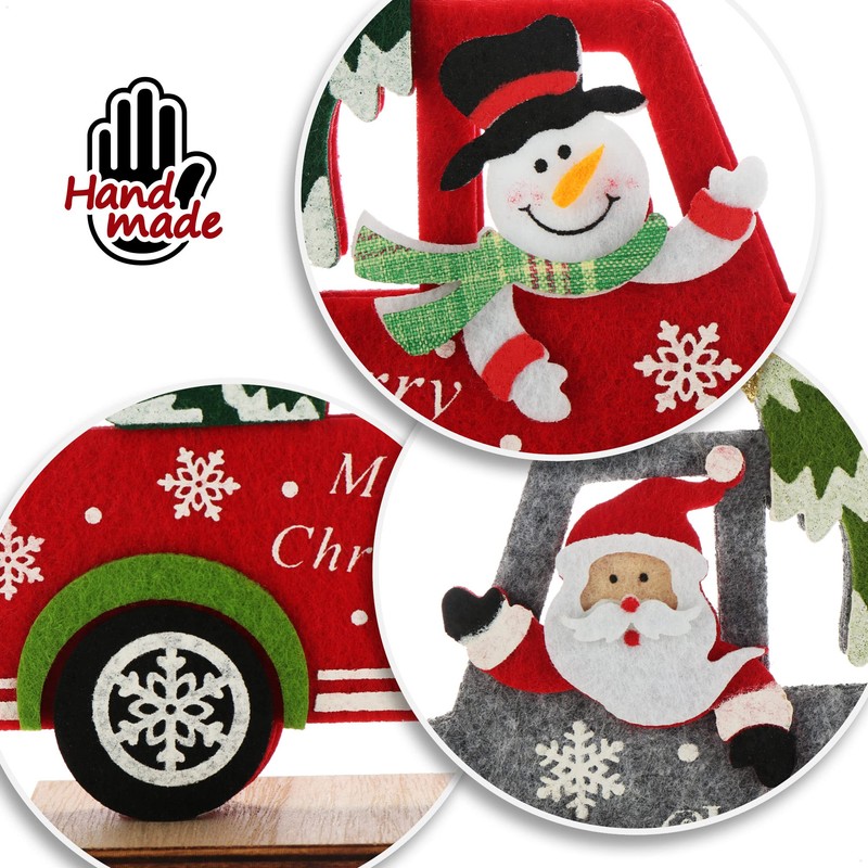 com-four® 2 x Felt Christmas Decorations - Decorative Stand - Christmas Table Decoration - Santa Claus and Snowman with Car as Felt Figures (Pick Up - Red Grey)