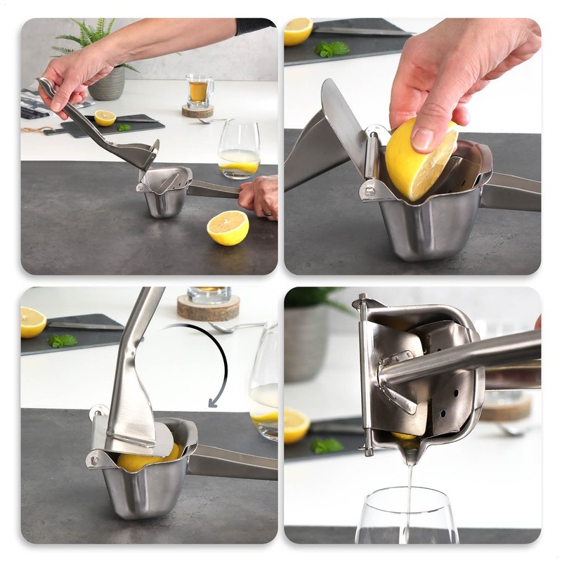 - Modern hand press: the stainless steel citrus juicer with pouring spout is a classic kitchen aid and should not be missing in any household