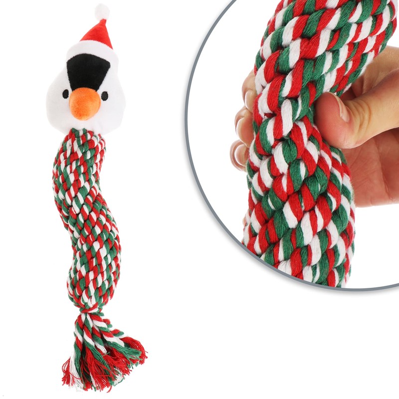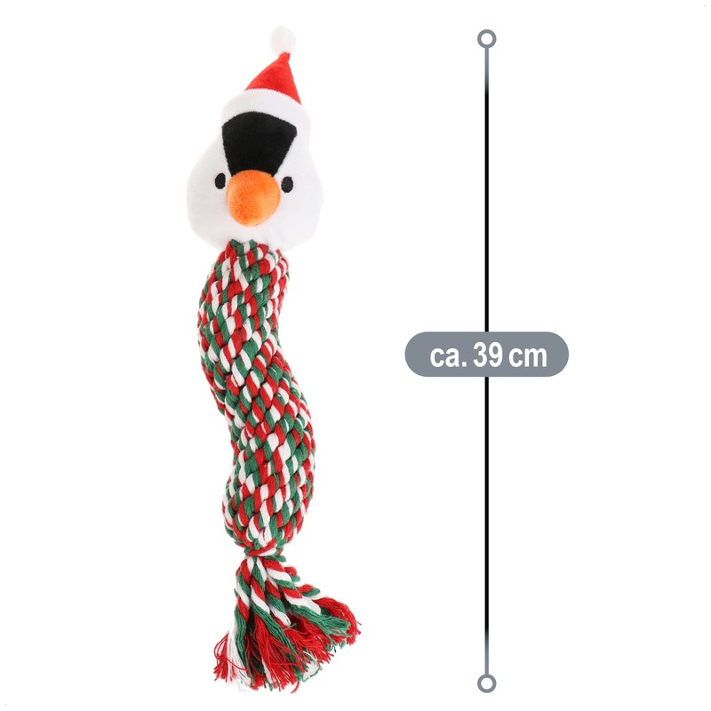 com-four® Hundespielzeug Pinguin - Kauspielzeug - Quietschspielzeug mit Juteseil und Plüsch-Kopf - Heimtierbedarf Beißspielzeug - Tau zum Kauen (1 Stück - Tau - Pinguin)