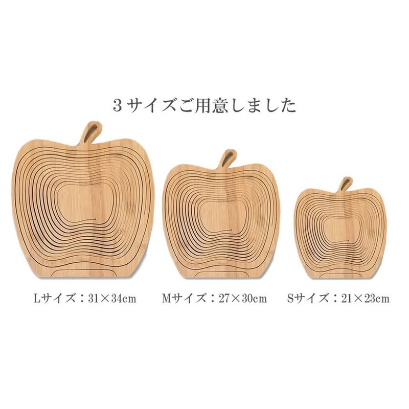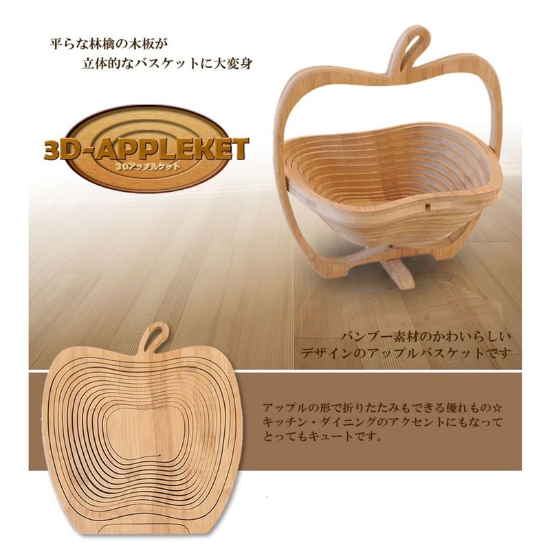 COM-SHOT MI-APPLKAGO-M Folding Super Compact Bamboo Apple Basket 3D 3D ⇔ 2D Flat Size M Size