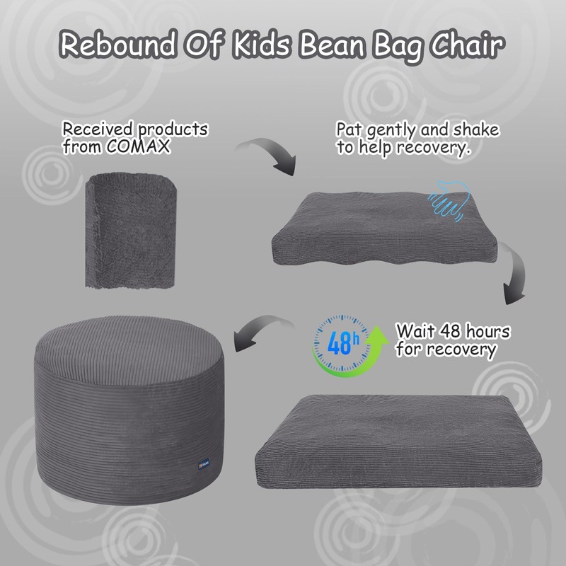 - Inflate 24-72 Hours: The kids' bean bag couch arrives compressed. Shake it initially and continue gently shaking over the next few days to help the filling expand evenly and achieve full rebound