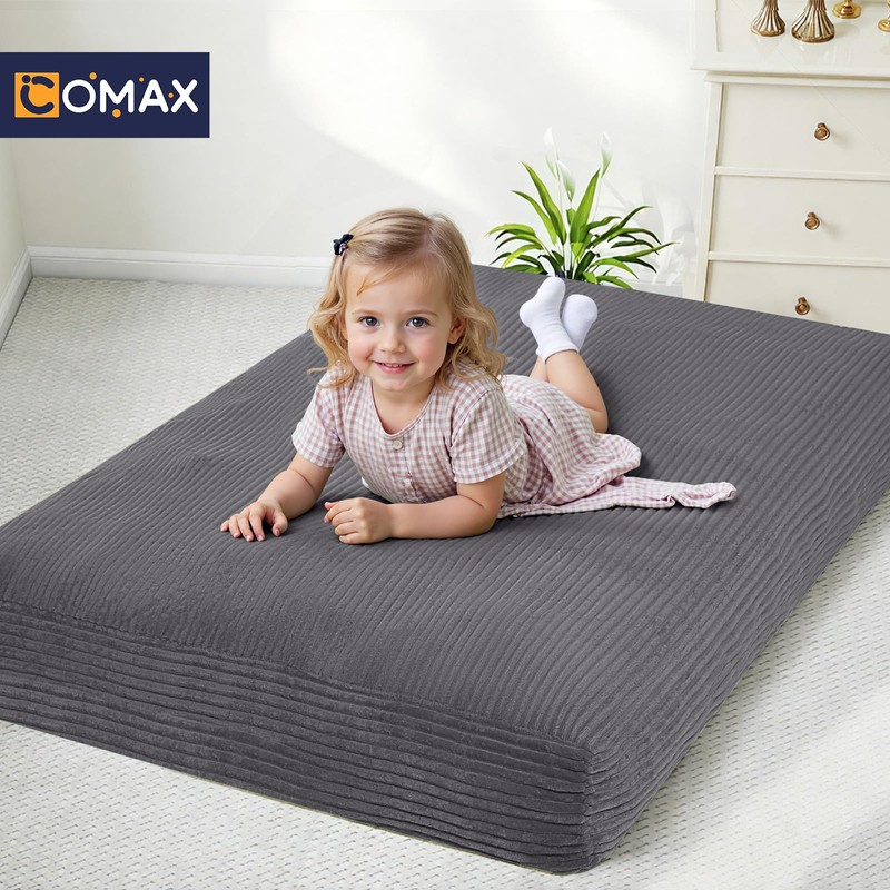 COMAX Kids Bean Bag Chair Turn into Beanbag Bed, Toddler Bean Chair Corduroy for Girl Boy Sleeping, Lazy Children Bean Bags with Filler, Convertible Child Floor Mattress, Charcoal