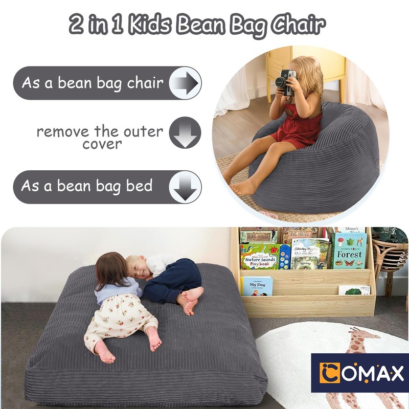 - 2-in-1 Bean Bag Chair for Kids: The kids bean bag chair is multifunctional. Converts from a small beanbag chair into a cozy kids' floor bean bag bed in just a few simple steps. A soft bean bag is perfect for kids to sit, read, play, and sleep
