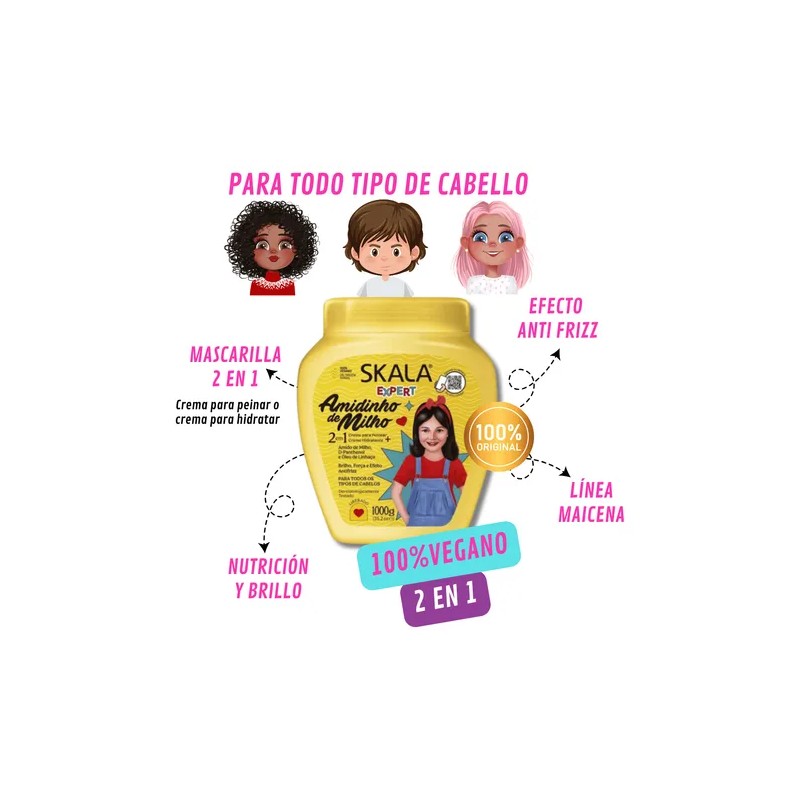 - Formato: crema para peinar e hidratante 2 en 1.