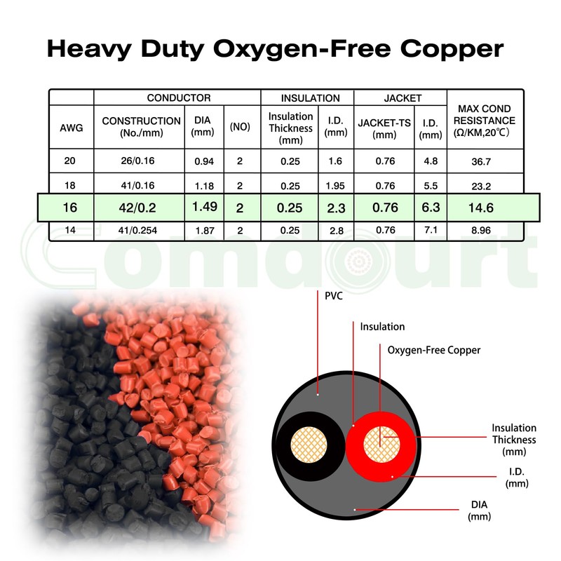 • High Conductivity: Our 16AWG stranded copper wire features 26 strands of 0.254mm copper wire inside each circuit, providing high precision and low resistance. It has higher conductivity compared to aluminum materials