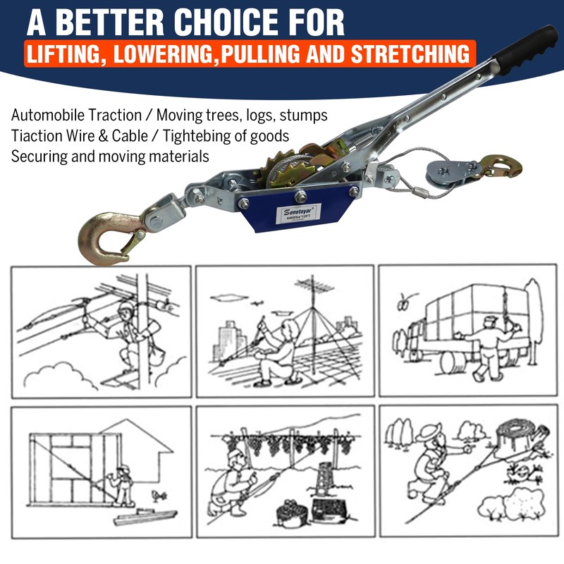 - Heavy-Duty 2-Ton Pulling Power:Tackle the toughest jobs with ease! This 2 ton Come Along Winch delivers a massive 4400 lbs horizontal load capacity, perfect for construction, farming, automotive recovery, and more. Its robust design ensures reliable performance under extreme conditions.