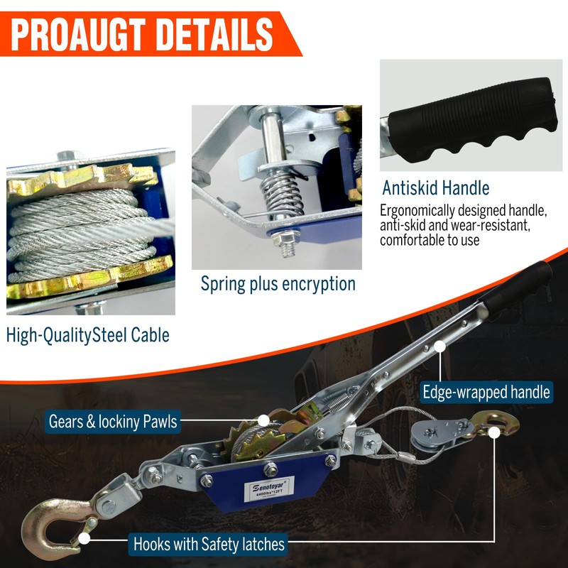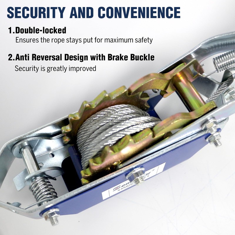 - Dual-Gear System for Smooth Operation:Experience effortless pulling with our innovative dual-gear system. Designed for even force distribution and smooth, jam-free operation, this winch makes heavy lifting and pulling feel like a breeze—even with one hand!