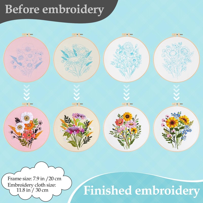 - Individually Packaged: Each material pack is separately wrapped and comes with an embroidery hoop in a PE zipper bag, ensuring neat and organized storage. Perfect for crafting at home or on the go, you can enjoy embroidery anytime, anywhere