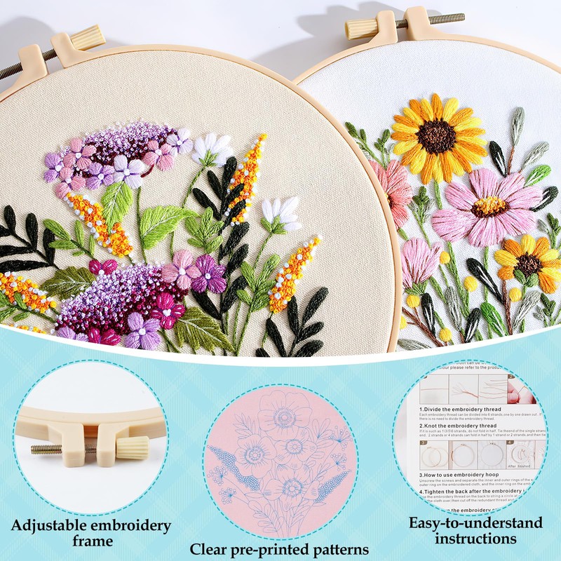 - High-Quality Materials: The beginners embroidery kit includes cotton fabric with water-soluble printed patterns, easily washed away with water after embroidery. Pre-threaded embroidery floss on spools and safe, non-slip needles ensure a smooth and enjoyable stitching experience