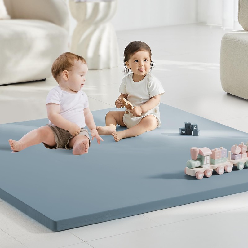 comehealthy Baby Play Mat for Floor, 50x50 Vegan Leather Playpen Mat, Thickened Foam Cushioned Mat for Infants and Toddlers, Waterproof, Non-Slip & Stylish Playmat for Babies, Easy to Clean, Blue