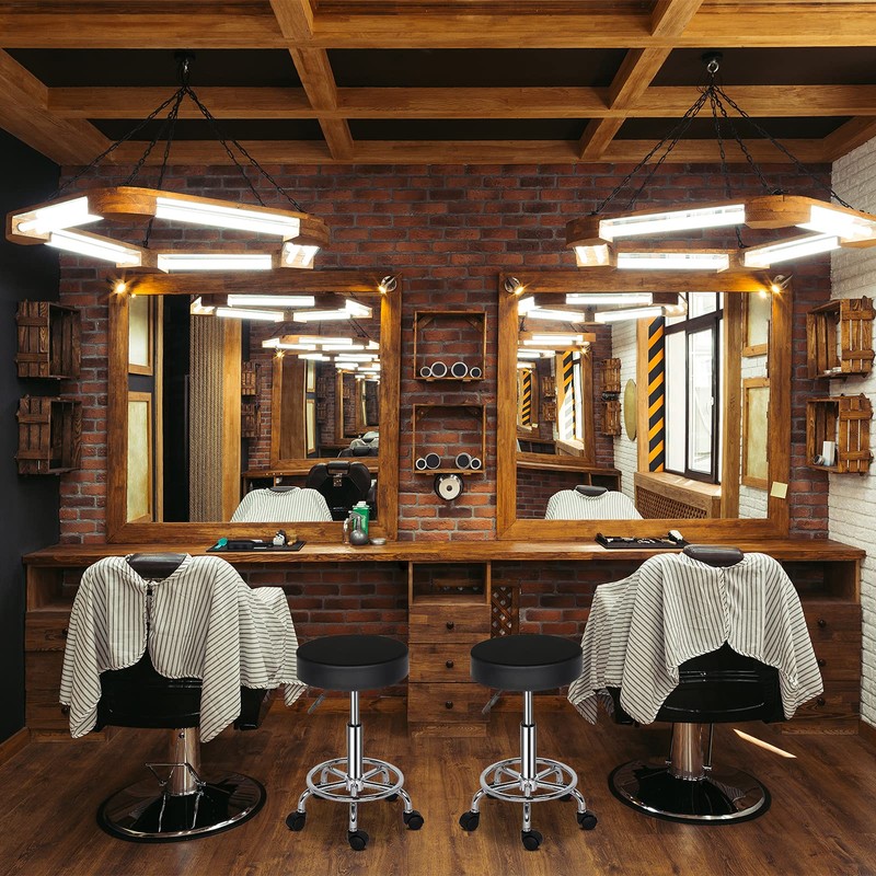 • Leather Shop Stool made of high quality PU leather & sponge & chrome-plated material, durable and soft for you to sit and features five casters, so it is easy for you to move it quickly