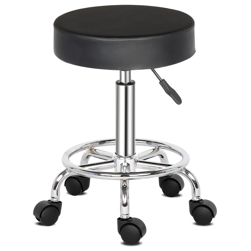Comemall PU Leather Round Rolling Stool Adjustable Stool with Wheels Round Ro...