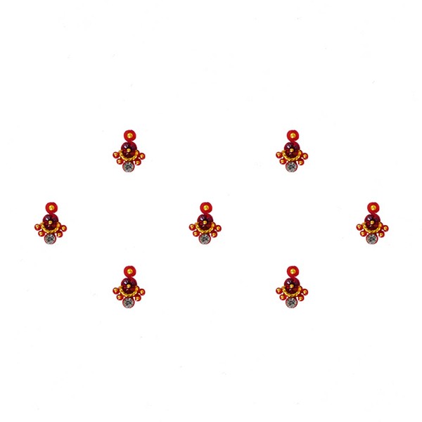 - Apply Instruction : To apply a bindi carefully remove it from the plastic and place on your forehead in between the eyebrows. Hold the bindi down for a few seconds or until you feel that your bindi holds firmly in place.The bindi can be reused and worn multiple times or until it loses its ‘stickiness’. You also can use eyelash glue to enhance the stickiness for avoiding fall off.