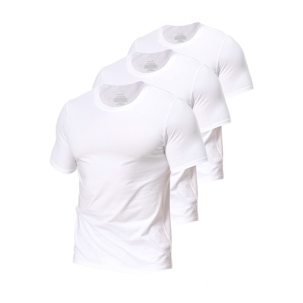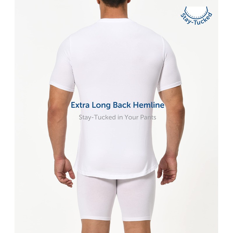 Comfneat Men's 3-Pack Stretch Undershirts Long Back Hem T-Shirts Crew Neck (White 3-Pack, L)